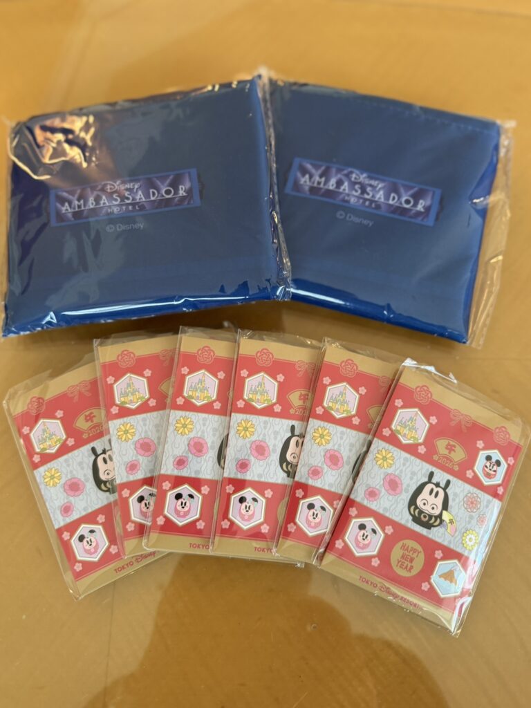 エコバッグ2個と、今回は事前に注文しておいたフォトフレーム、そして大晦日宿泊ということでお年玉コインがテーブルに置いてありましたよ。