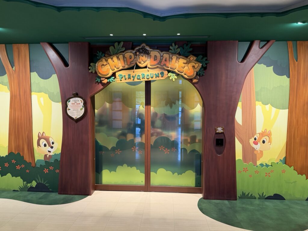 また、宿泊者が利用できるチップとデールのプレイグラウンドも利用でき、子供達は大喜びではしゃぎまわっていました。宿泊者の方はルームキーをかざすと、チェックイン前の方はスタッフの方にお願いすると利用できますよ。