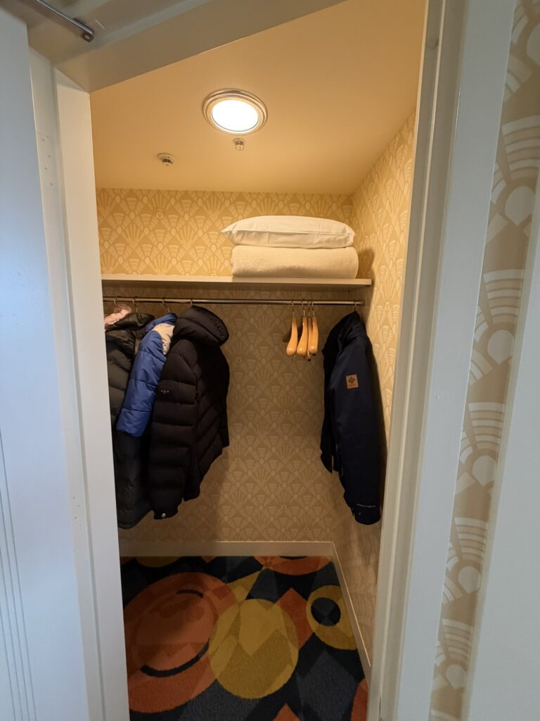 ウォークインクローゼットもついていて、人数分のダウンコートとトランクをしまってもまだ余裕があり、収納もしっかりしています。