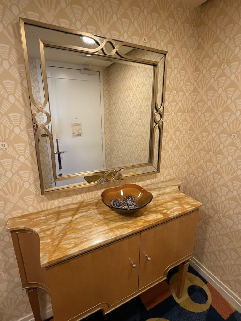 扉を開けると、正面に装飾鏡と、左手に壺が飾られていました。