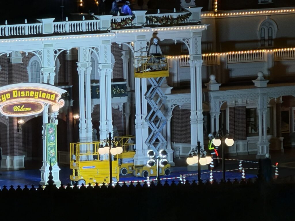 夜は、正面ゲートがクリスマス仕様に変わっていく様子を眺めながら、就寝。