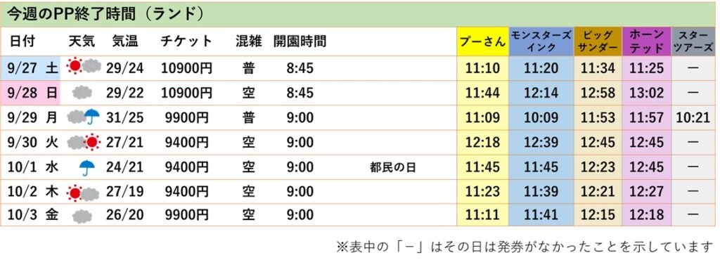 【2025年9月27日〜10月3日版】DPA・プライオリティパスの終了時間まとめ|東京ディズニーランド&シー週次レポート