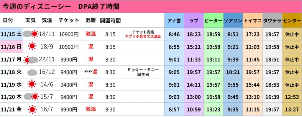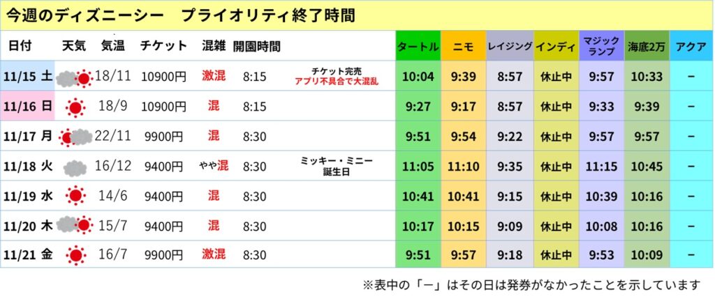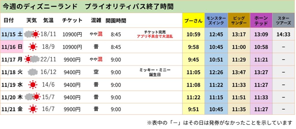 ■ 11/18(火):ミッキー&ミニーの誕生日なのに“週で最も空いた日”