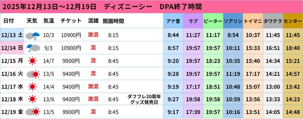- シーのDPAでは、12/13(土)のソアリン8時台終了が衝撃的