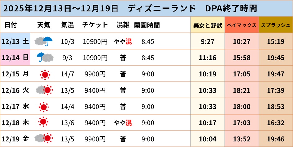 週末の悪天候はありましたが、先週に引きつづきランド、シー共に混雑した1週間でした。DPA・プライオリティパス共に早期の終了が目立っています。
