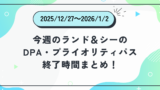 📌 【2025年最新】 DPA・プライオリティパス終了時間まとめ│混雑度別に完売傾向を最速で知りたい方はこちら👇