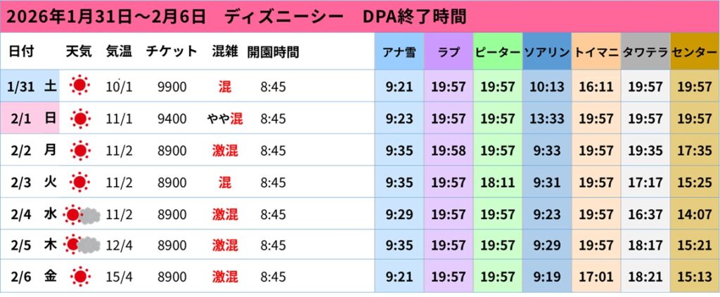 ディズニーシー|DPAの終了時間と傾向