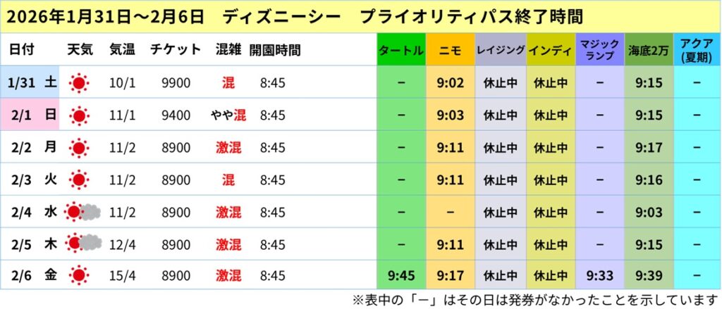・シーのプライオリティパスは開園後30分で終了。レイジングは運休継続中。