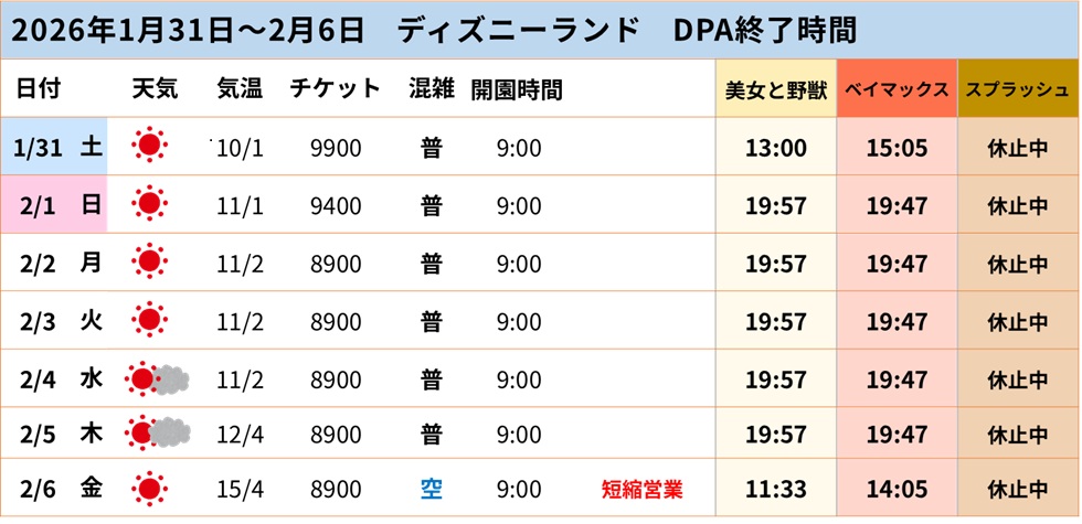 ランドも先週より混雑度は上昇した印象ですが、DPAへの影響は限定的でした。