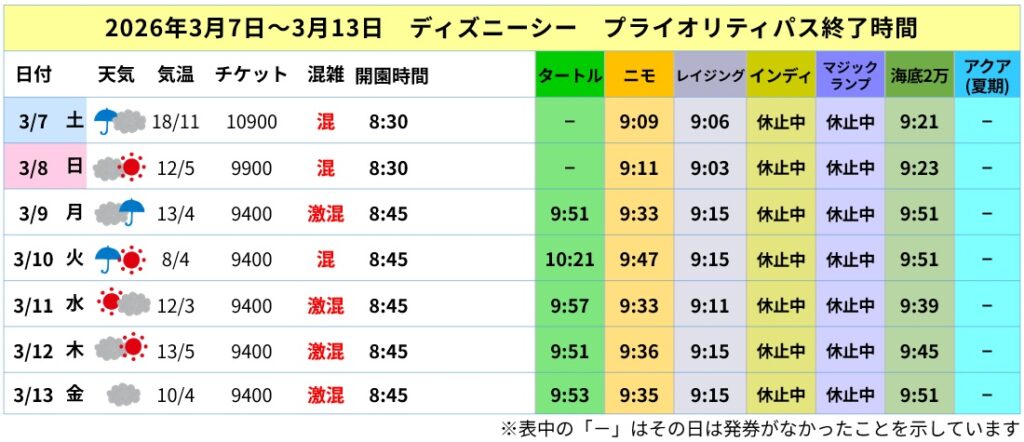 3/31(火)をもってクラブマウスビートの終了などもありますので、来週以降も混雑度の推移やパスの売り切れ時間の推移に注目です。
