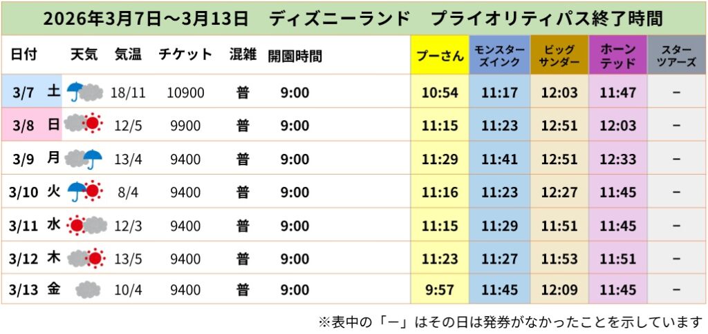 ディズニーランド|プライオリティパスの終了時間と傾向